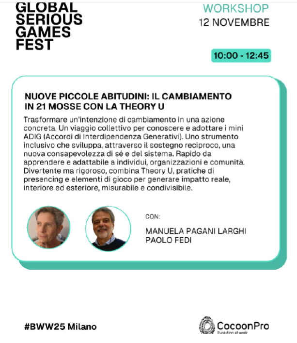 - "Presencing: 7 pratiche per trasformare sé stessi, la società e l’impresa" - Otto Scharmer e Katrin Kaufer - Appendice: "Dialoghi Futuri: un caso di studio per navigare il libro connettendo isole di (in)coerenza" di Manuela Pagani Larghi e Paolo Fedi - (Ayros, 2025)