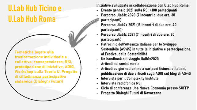 Per conoscere e partecipare alla nostra Comunità nel Canton Ticino, potete collegarvi tramite la piattaforma globale oppure tramite il gruppo Linkedin U.Lab Hub Ticino e il gruppo Linkedin IDG's Hub Italia e Canton Ticino.